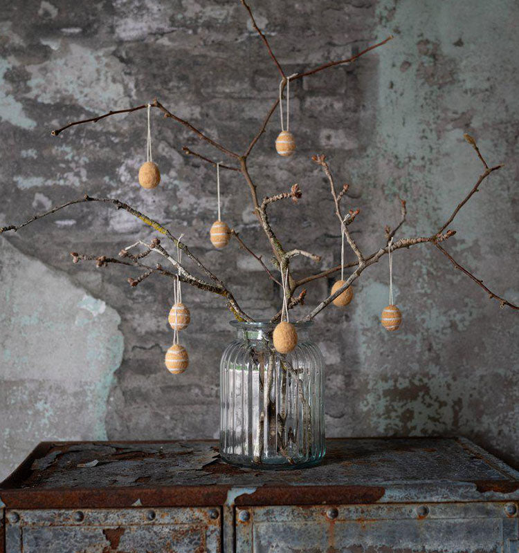 Våra  Ägg i påse  gult/randig för att passa din personliga stil och inredning, och är det perfekta sättet att skapa en festlig atmosfär inför påsken. Oavsett om det är för att dekorera påskbordet, skapa roliga påsklekar eller för att ge bort som gåvor till nära och kära, kommer dessa ägg att bli en uppskattad del av ditt påskfirande.