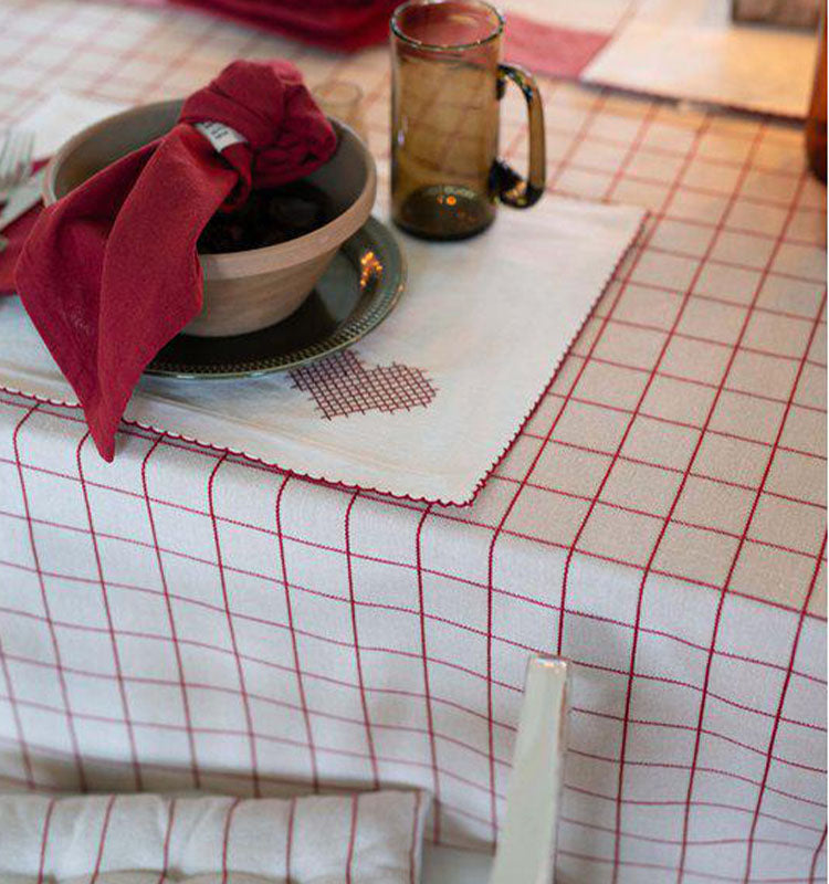 Den röda Axel duken är det perfekta tillskottet till din dukning, särskilt under högtider och festliga tillfällen. Tillverkad av återvunnet material, den kombinerar både stil och hållbarhet. Den djupa, varma röda nyansen tillför en elegant och inbjudande känsla till vilket rum som helst.