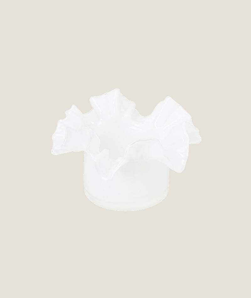 Tillverkad i glas med ett lätt frostat utseende som dämpar ljuset på ett mjukt och stämningsfullt sätt. Perfekt att använda med värmeljus eller LED-ljus för en trygg och mysig belysning.