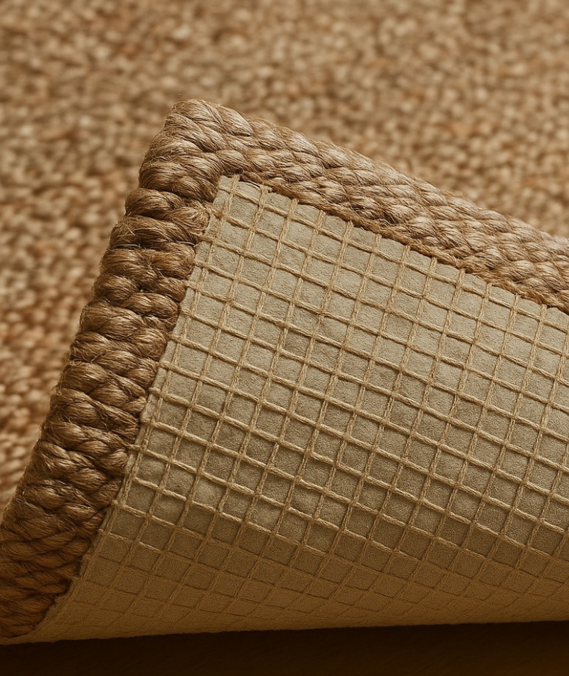 • Framsida: Handspunnen jute (natur + chokladbrun)