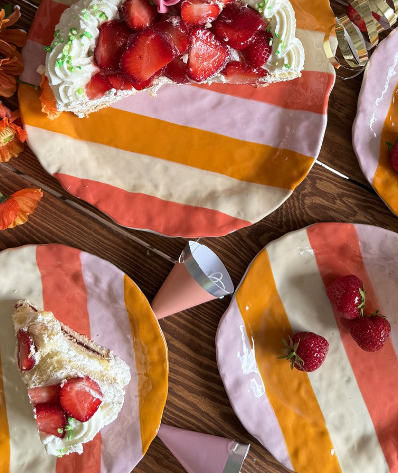 Mindre tallrik i vår nya unika handmålade serie Kalas. Varje del är unik och små olikheter kan förekomma, vilket ger varje produkt sin egen charm. Produkterna är märkta med ""Every piece is unique"". Tål både diskmaskin och mikrovågsugn.