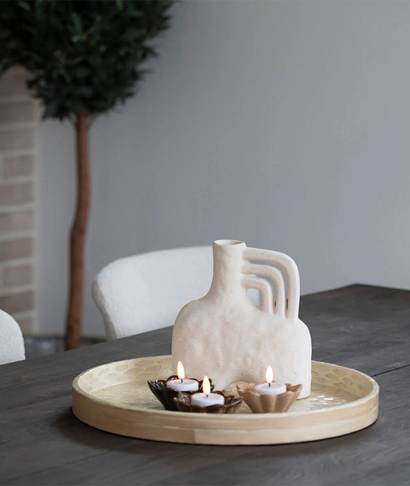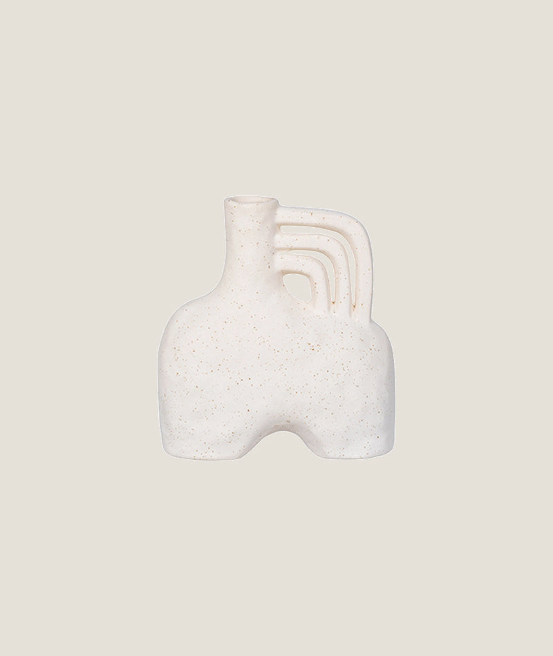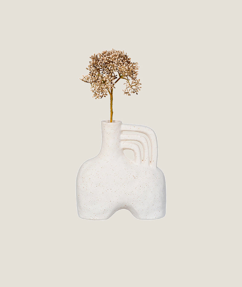 En stilren och tidlös keramikvas i en mjuk beige nyans, perfekt för att lyfta din inredning med en naturlig och harmonisk touch. Med sin unika form och matta yta blir denna vas en vacker detalj i sig själv, men den fungerar även utmärkt med både färska blommor, torkade buketter eller dekorativa grenar.