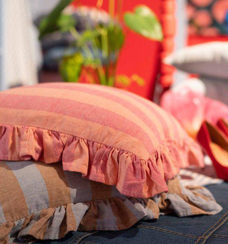 Med sina mått på 45x45 cm passar kuddfodralet de flesta innerkuddar och är lätt att matcha med andra textilier i hemmet. Volangen ger en extra dimension, oavsett om du inreder med en bohemisk, lantlig eller klassisk stil.