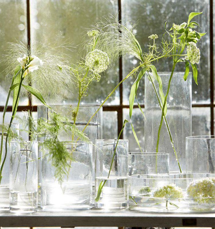 Cylindervasen i Klar Glas har en ren och krispig design som låter dina blommor ta centrum. Det klara glaset ger en transparent yta som låter skönheten i blommorna stråla.