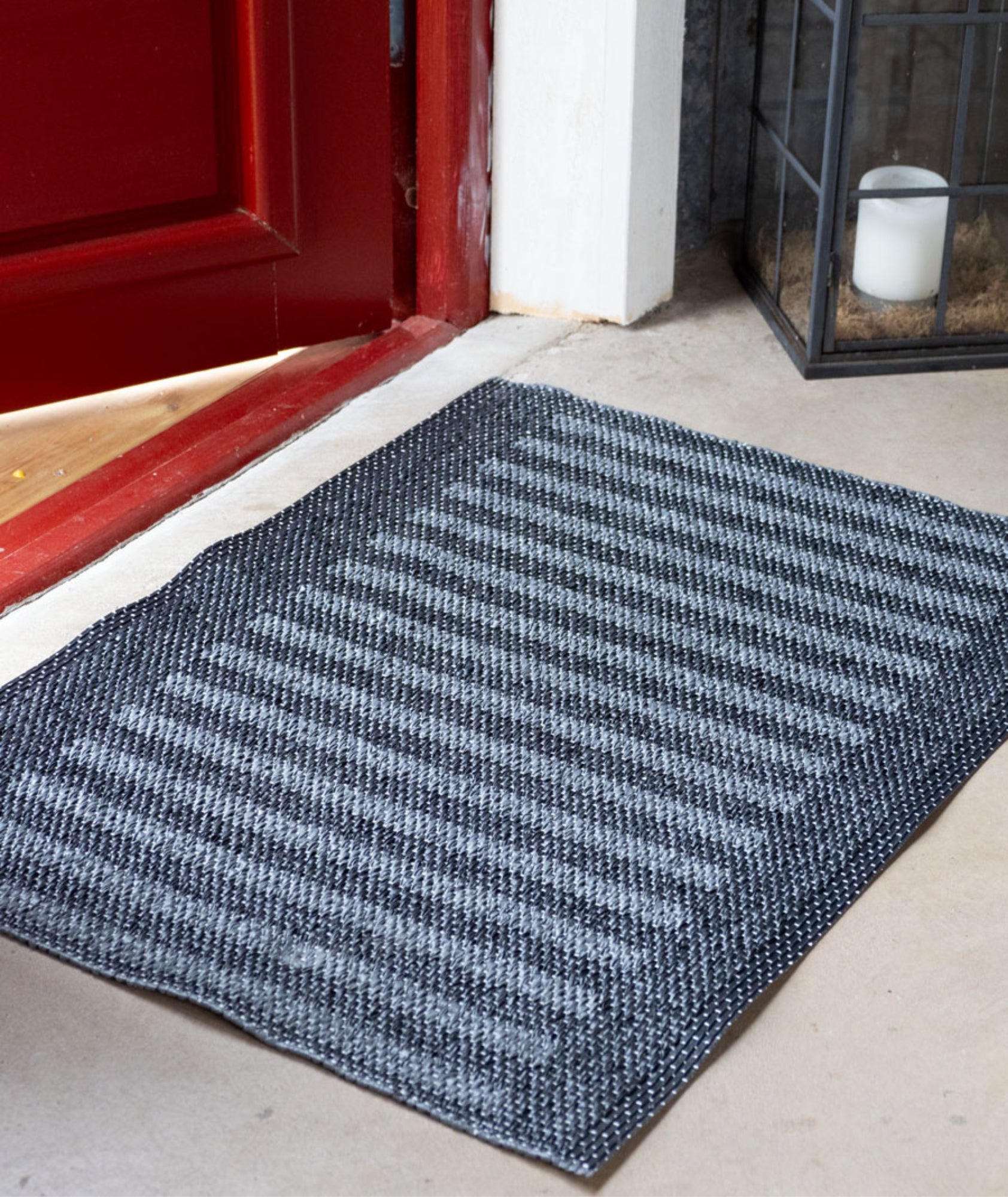 Dörr- badrumsmatta Stripes i svart/mörkgrått.