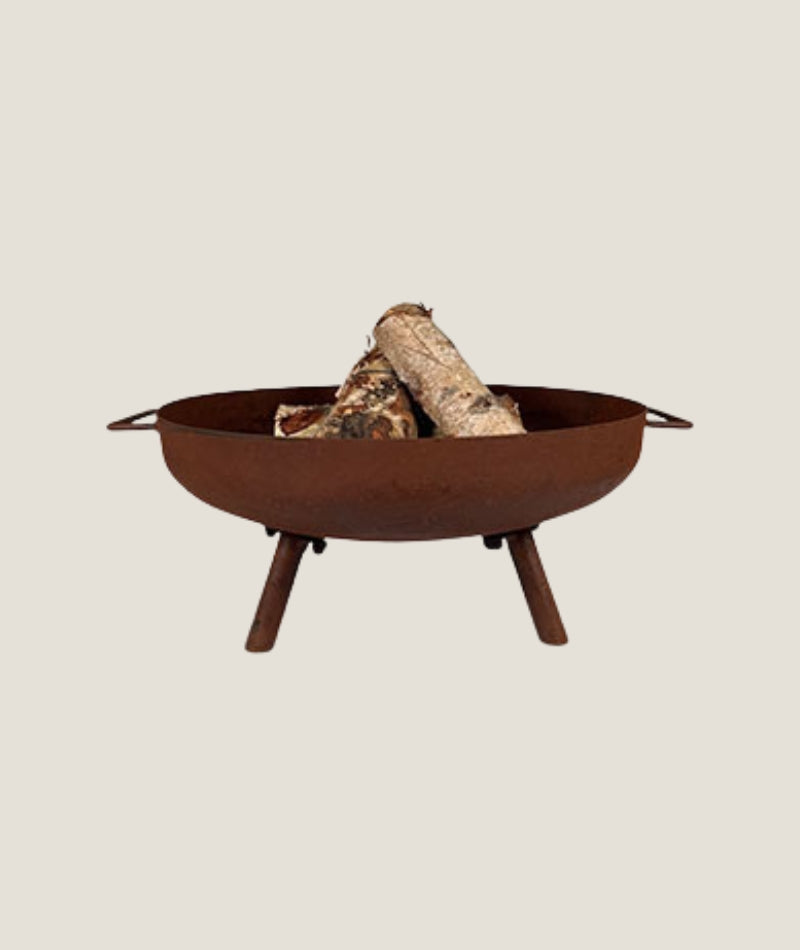 Ett robust eldfat i rostfärgat järn som ger ett stämningsfullt sken i trädgården. Med 60 cm diameter blir det en dekorativ och funktionell samlingspunkt för mysiga kvällar.