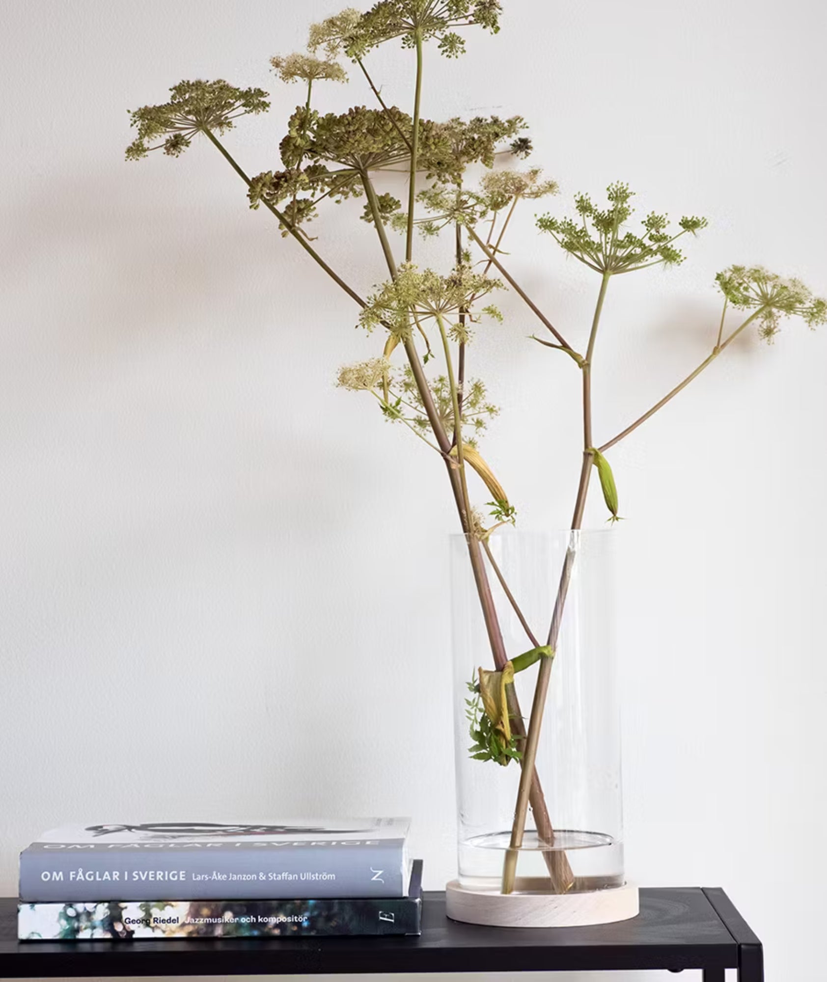 Flex hög är en elegant och mångsidig inredningsdetalj som kombinerar form, funktion och svenskt hantverk. Den fungerar lika bra som vas, ljuslykta eller förvaringsburk, tack vare det smarta träfatet som även kan användas som lock. Designen är stilren och tidlös, vilket gör att den smälter in i alla typer av miljöer, från det moderna hemmet till den klassiska inredningen.