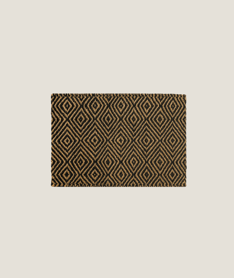 En slitstark dörrmatta i jute med klassiskt gåsögamönster. Latexbaksidan gör att den ligger stadigt på plats och samlar upp smuts på ett effektivt sätt.