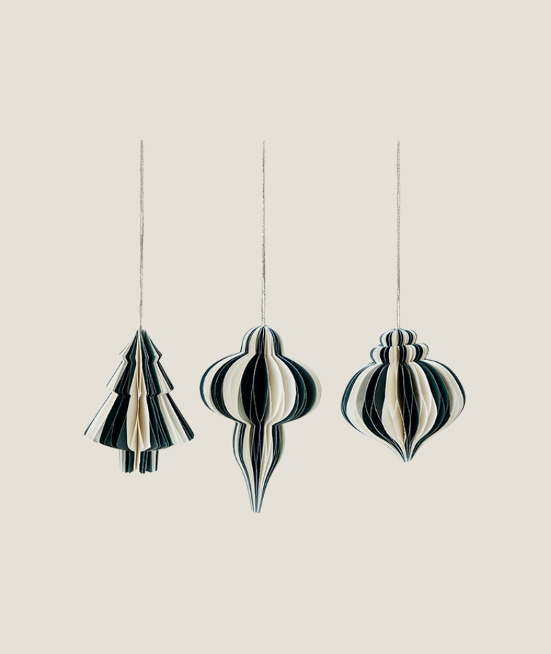 Skapa en klassisk och stämningsfull jul med våra randiga julkulor i offwhite och grön. Denna box innehåller en mix av vackra papperskulor, perfekt att hänga i granen eller använda som dekoration runt om i hemmet. De är tillverkade av högkvalitativt papper med en lätt och hållbar design som gör dem enkla att sätta upp och förvara. Med sin tidlösa färgkombination blir dessa kulor en favorit i juldekorationerna år efter år!