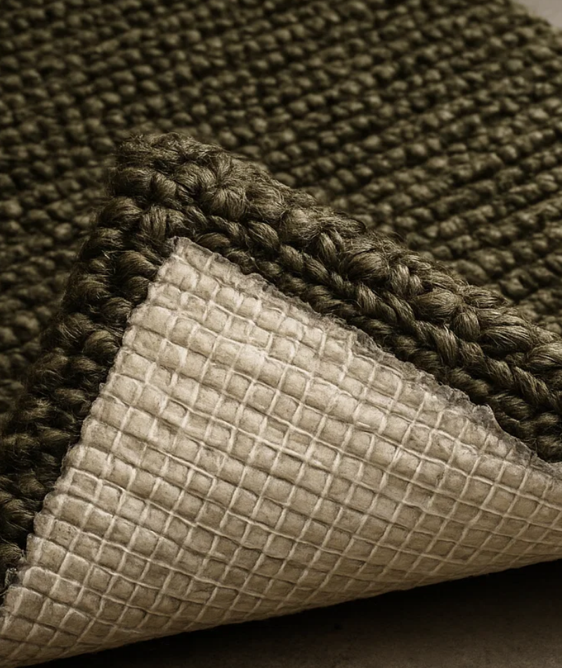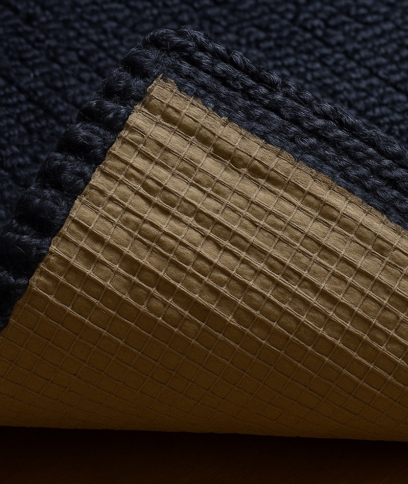 - Undvik långvarig exponering för direkt solljus. Det kan bleka färgen över tid. Mattornas latex- eller gummibaksida gör att de ligger stadigt på golvet. Kontrollera regelbundet att underlaget är rent och torrt för att bevara funktionen.