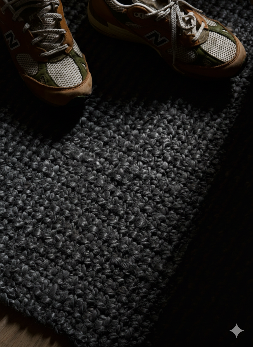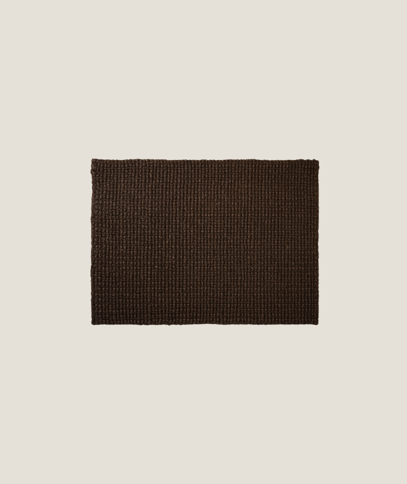 Kerala tillverkas i handspunnen jute och vävs i boucléteknik. Det skapar en mjuk mensamtidigt slitstark struktur. Dörrmattans garn finns både i ursprungliga nyanser och i färgat garn, där det färgade går i jordnära toner som ger en balanserad helhet. Latexbaksidan ser till att mattan ligger stadigt på plats, medan den invikta kanten skyddar mot fransning och slitage längs kanterna.