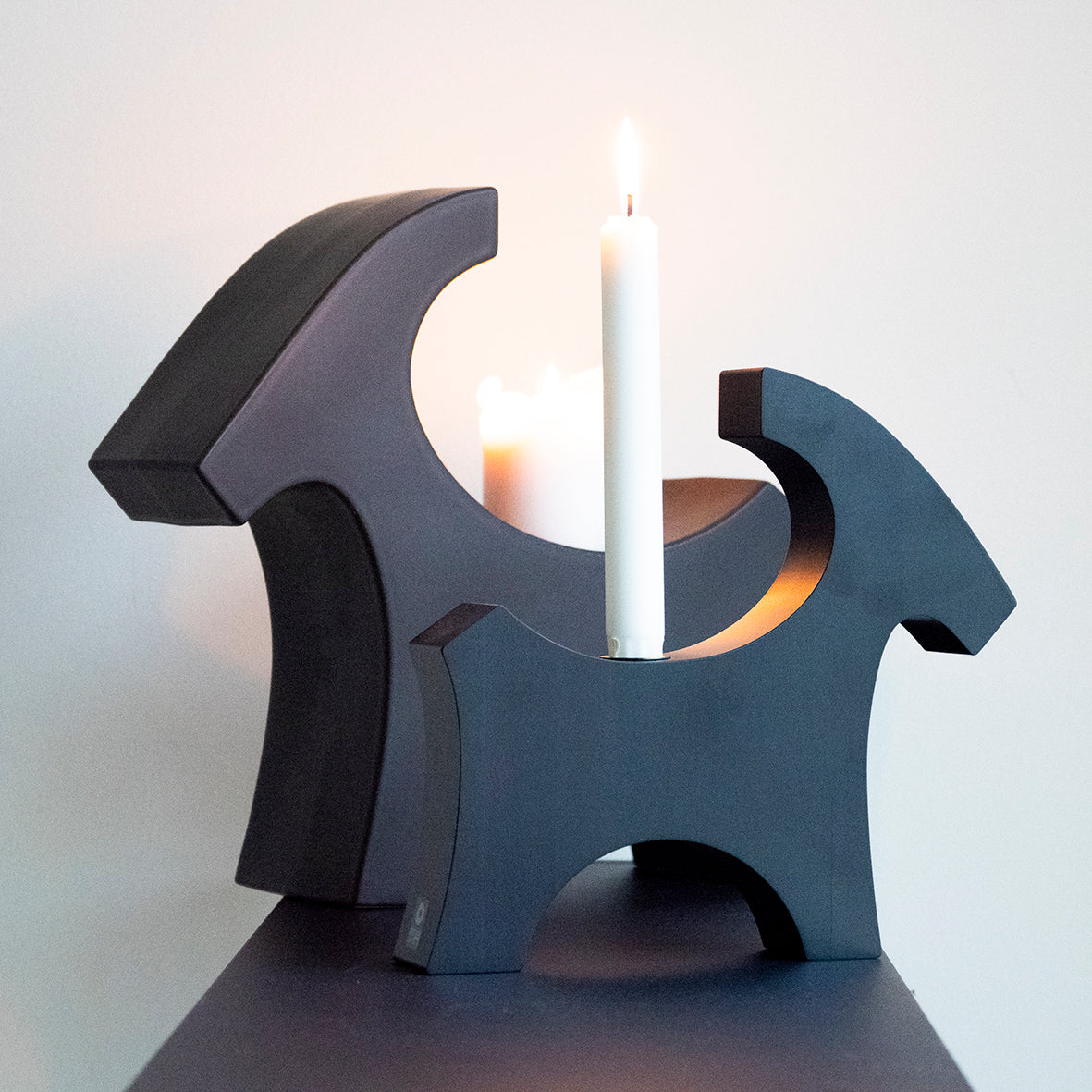 Ljusstake för blockljus 7 cm i mattsvart glasyr.