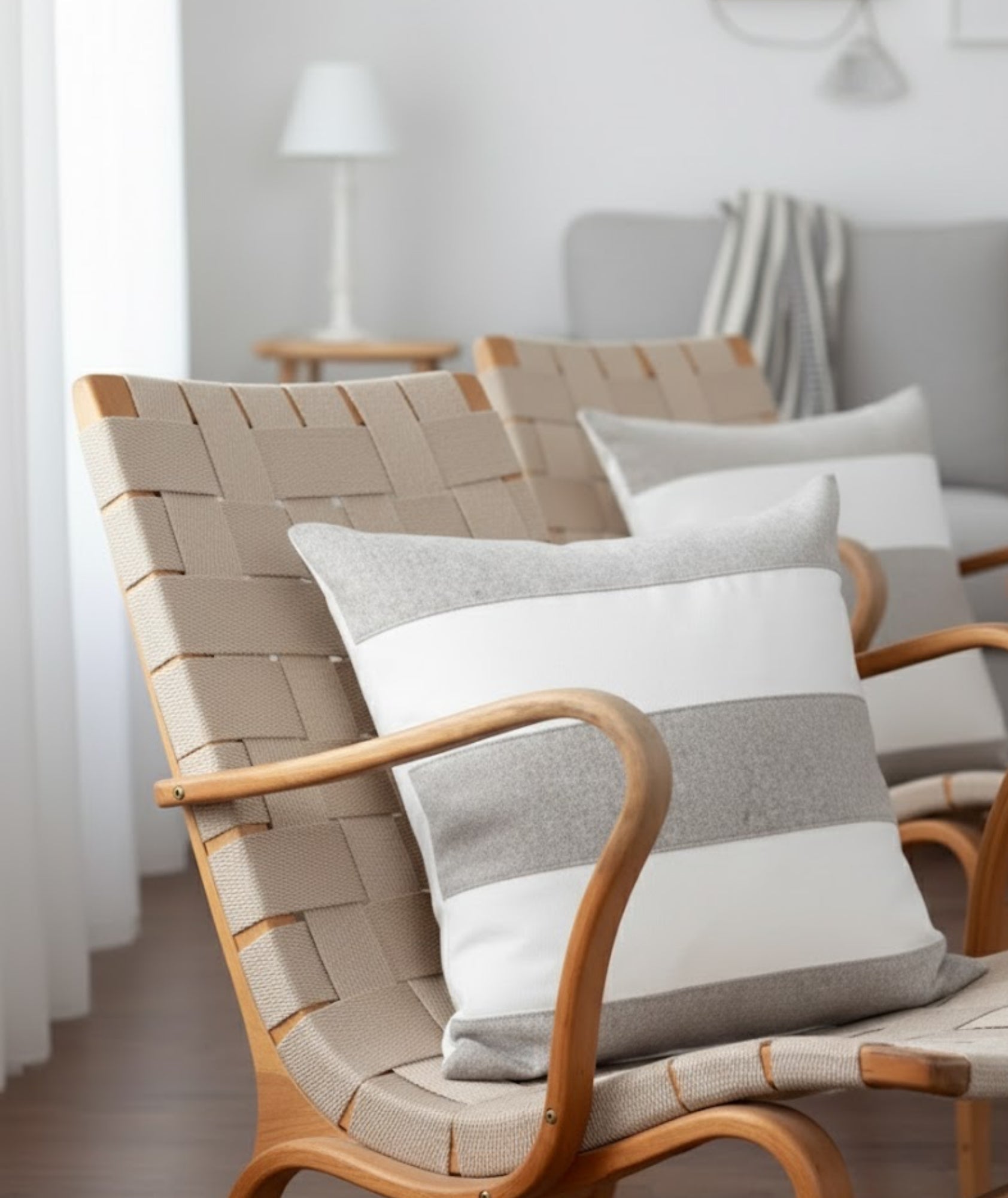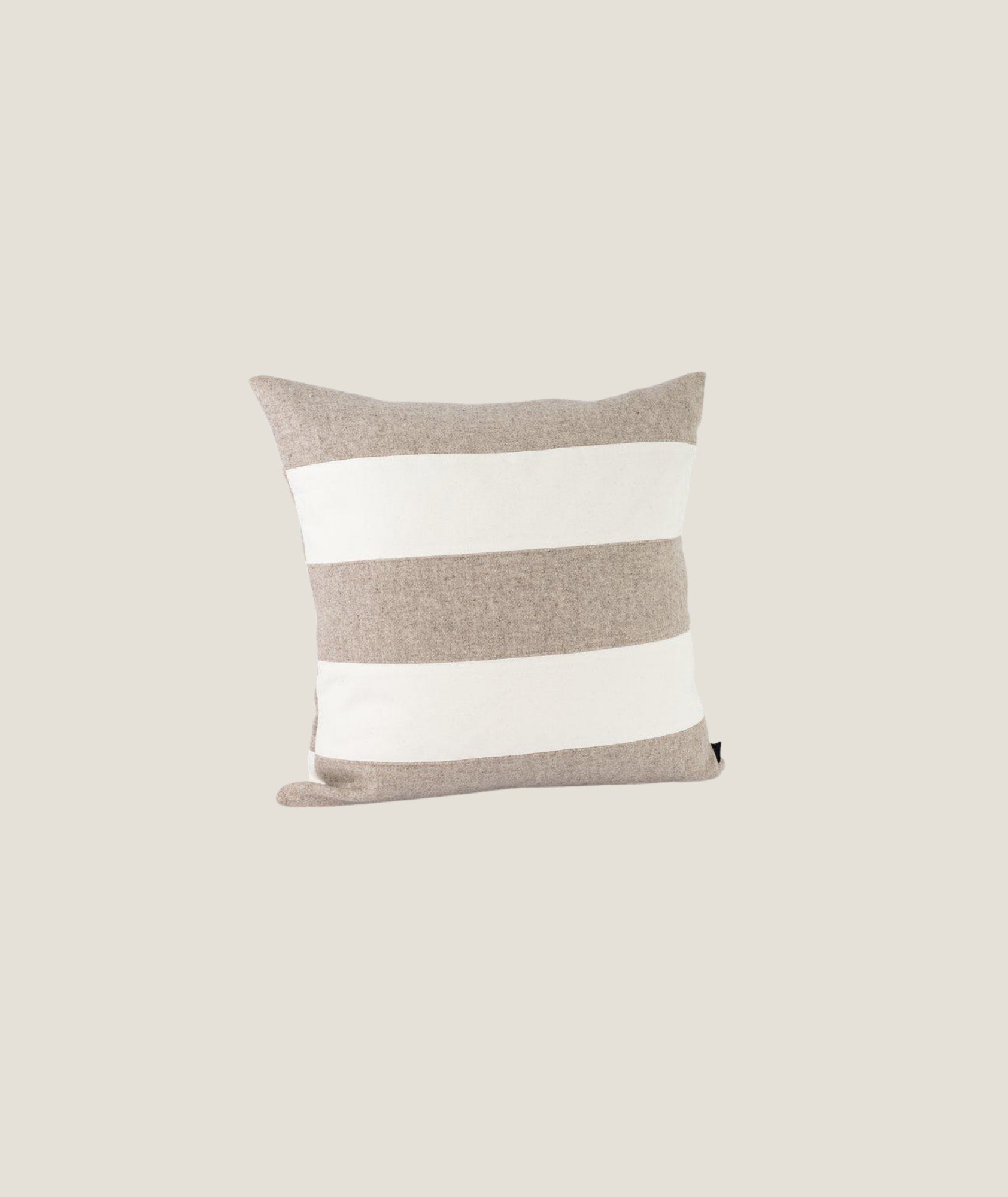 Kuddfodral Multi är ett exklusivt randsytt kuddfodral som kombinerar två vackra naturmaterial, mjuk ullmelton och slitstark bomullscanvas. De noggrant sydda ränderna med nedstickade sömmar skapar en vacker struktur och ger fodralet en levande känsla med tydlig hantverkskvalitet. Den färgställning som kallas Multi stripe ger en harmonisk men uttrycksfull karaktär som passar lika bra i det moderna hemmet som i en mer klassisk miljö.
