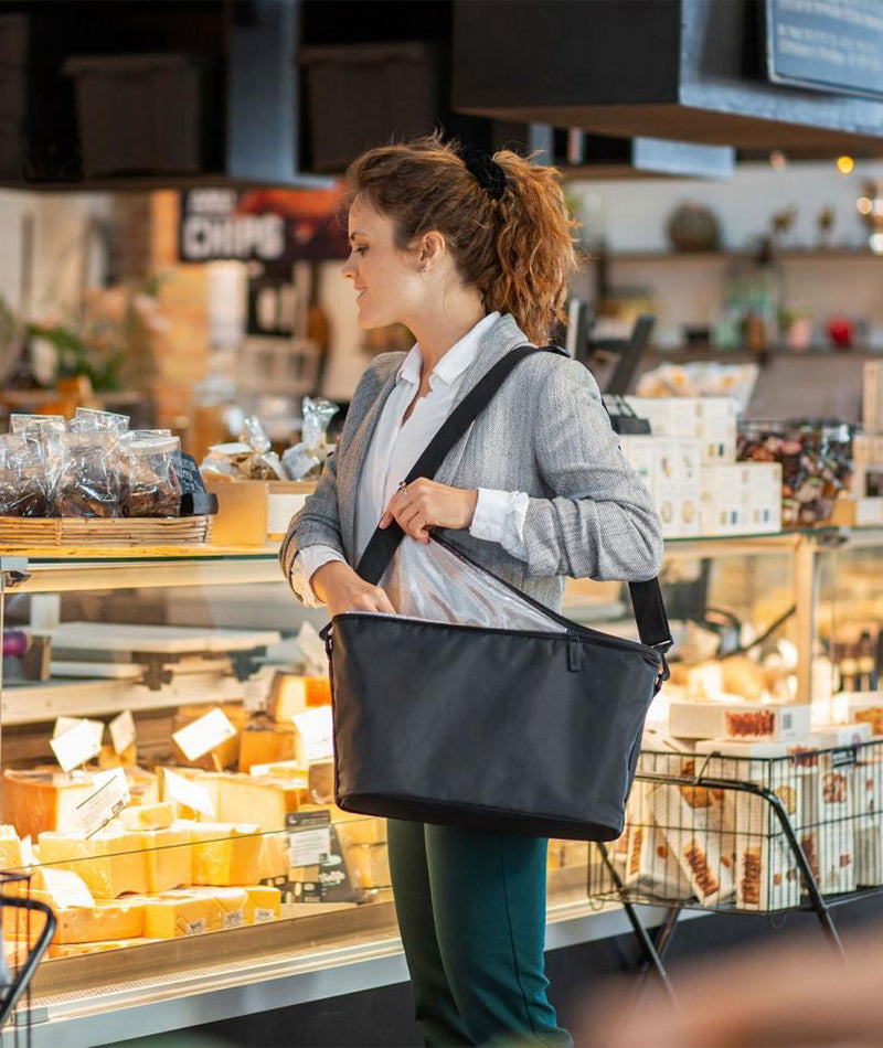 Stor svart kylväska från Hinza. Kylväskan har en dragkedja så att du lätt kan öppna och plocka ur och i dina saker. Kylväskan från Hinza är perfekt för din utflykt eller när du handlar kylvaror på sommaren. Välj själv om du vill bära väskan som den är, eller placera kylväskan i din Hinzaväska.
