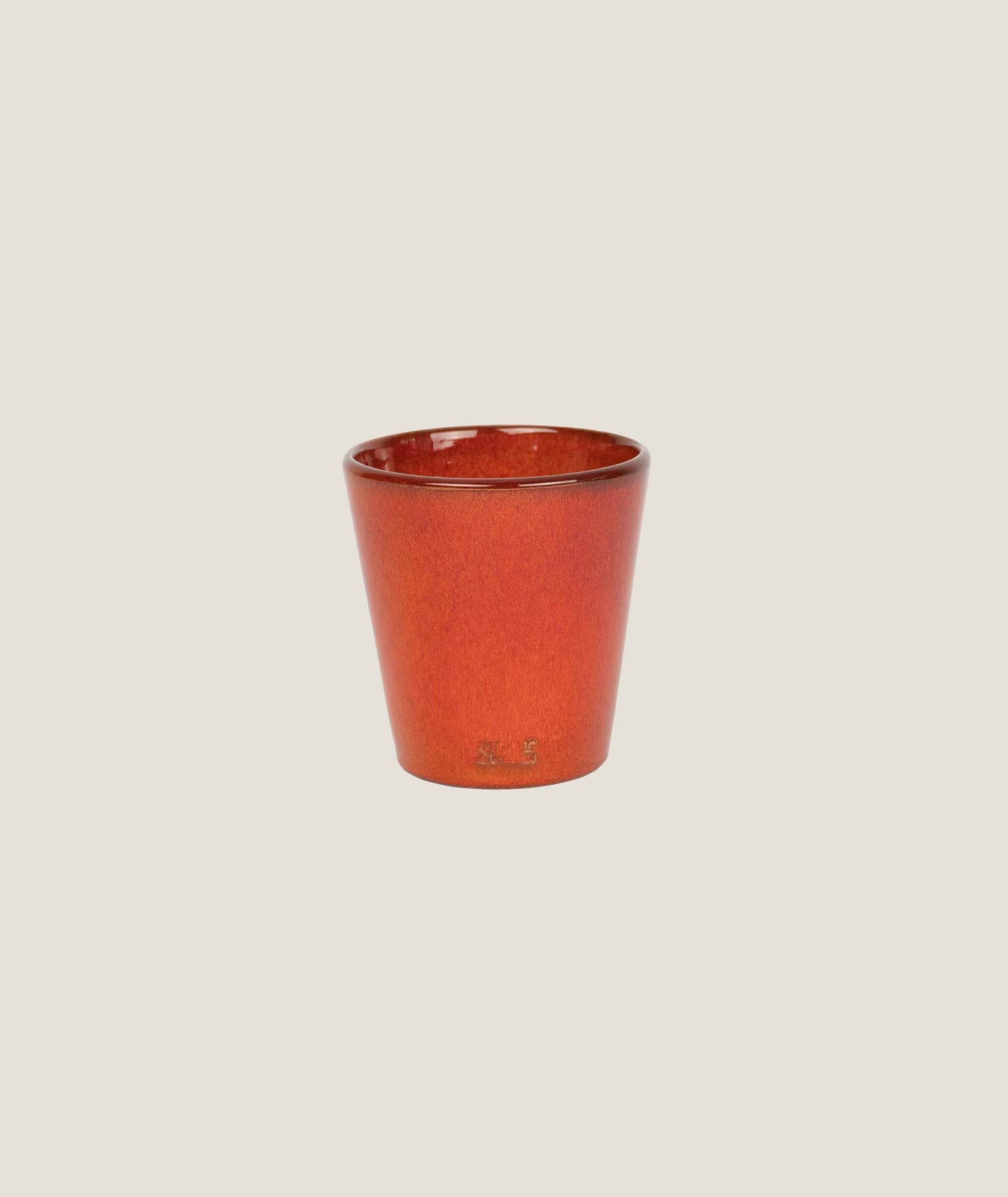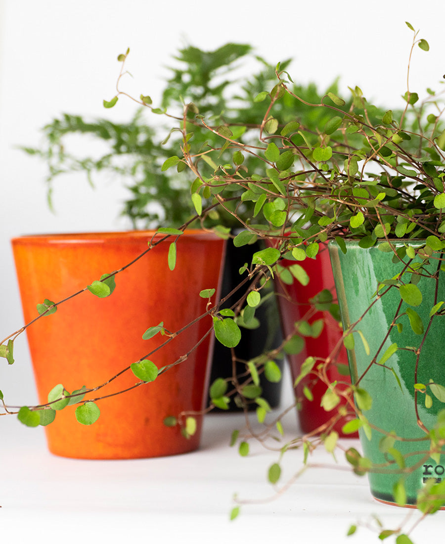 Den varma mandaringlasyren är en så kallad effektglasyr, vilket gör varje kruka unik. Färgens intensitet varierar naturligt – från ljusare till mörkare toner, beroende på hur glasyren reagerar i ugnen. Resultatet är ett levande uttryck med djup och karaktär, där ingen kruka är den andra lik.