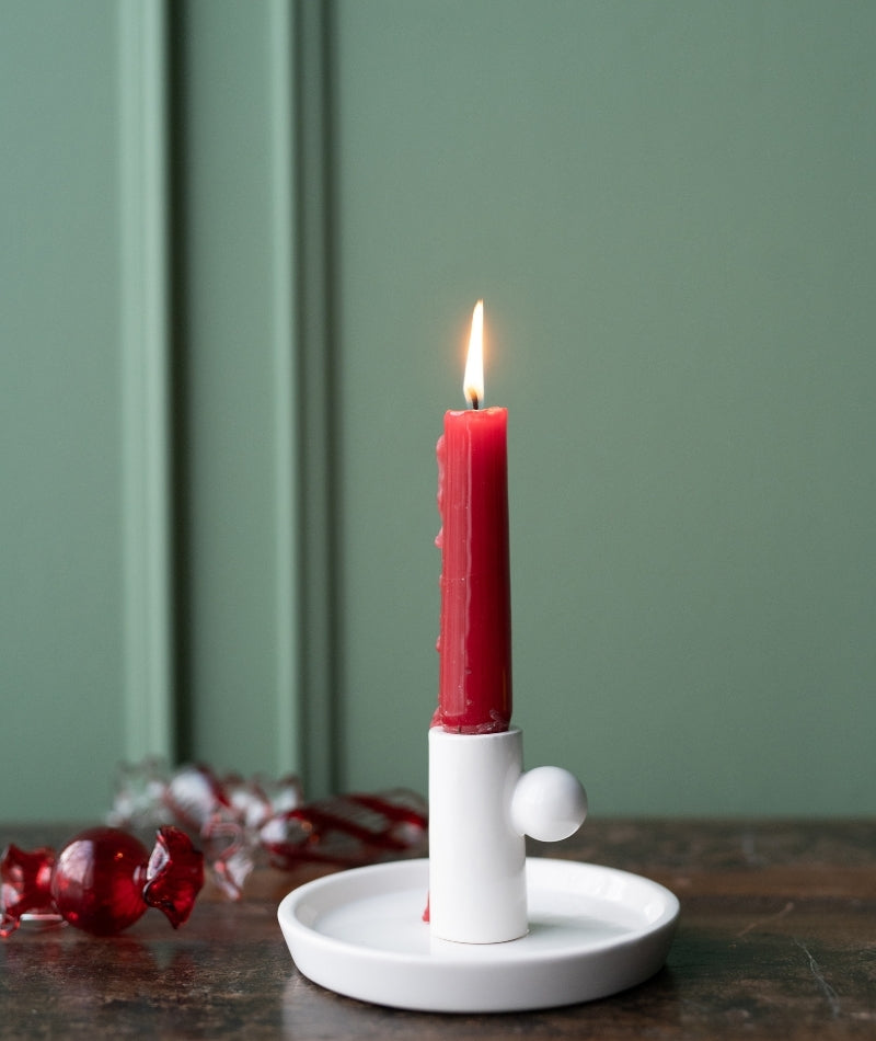 Mary Ljusstake i vit är en charmig och stämningsfull inredningsdetalj som lyser upp rummet med sin neutrala färg.