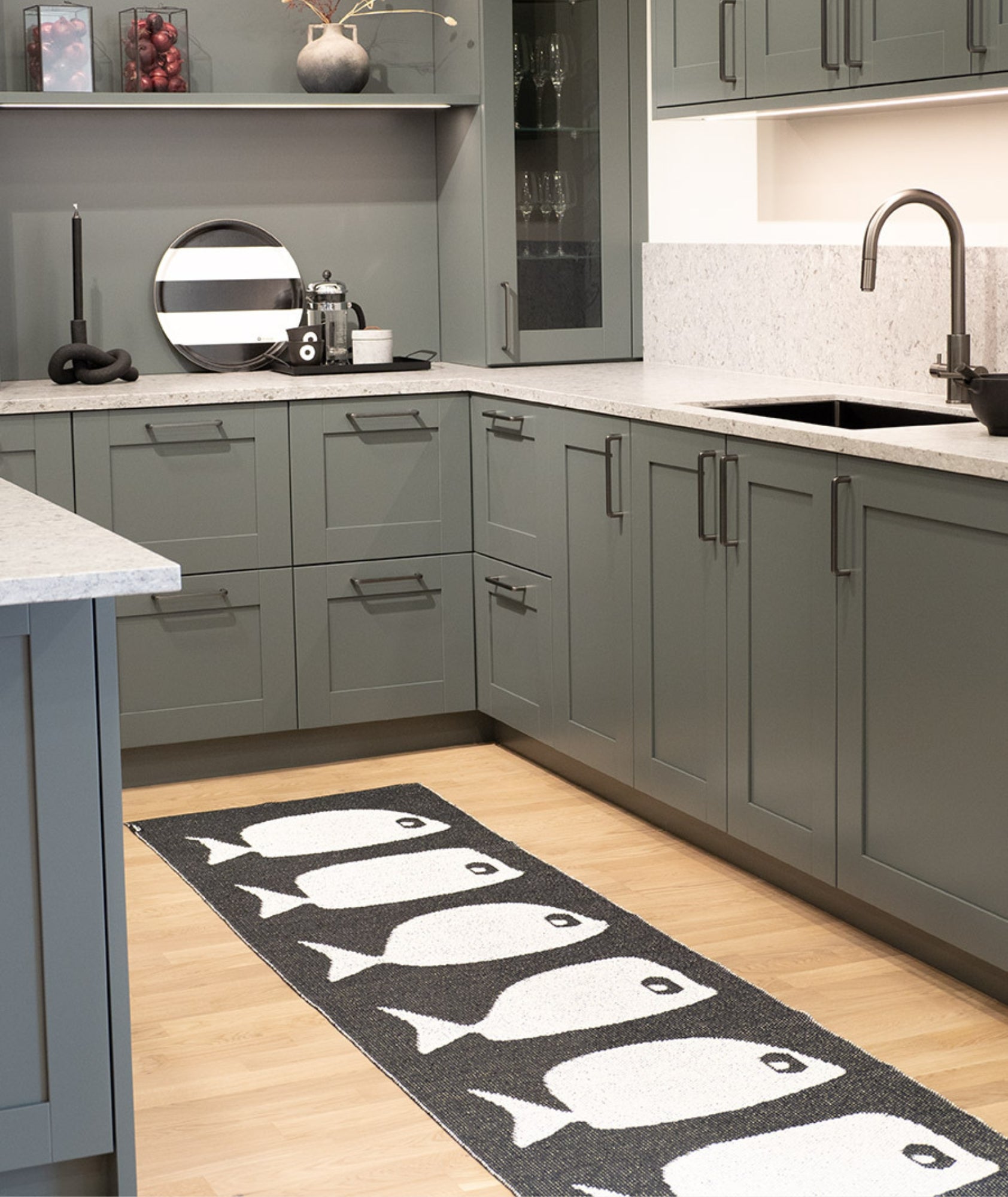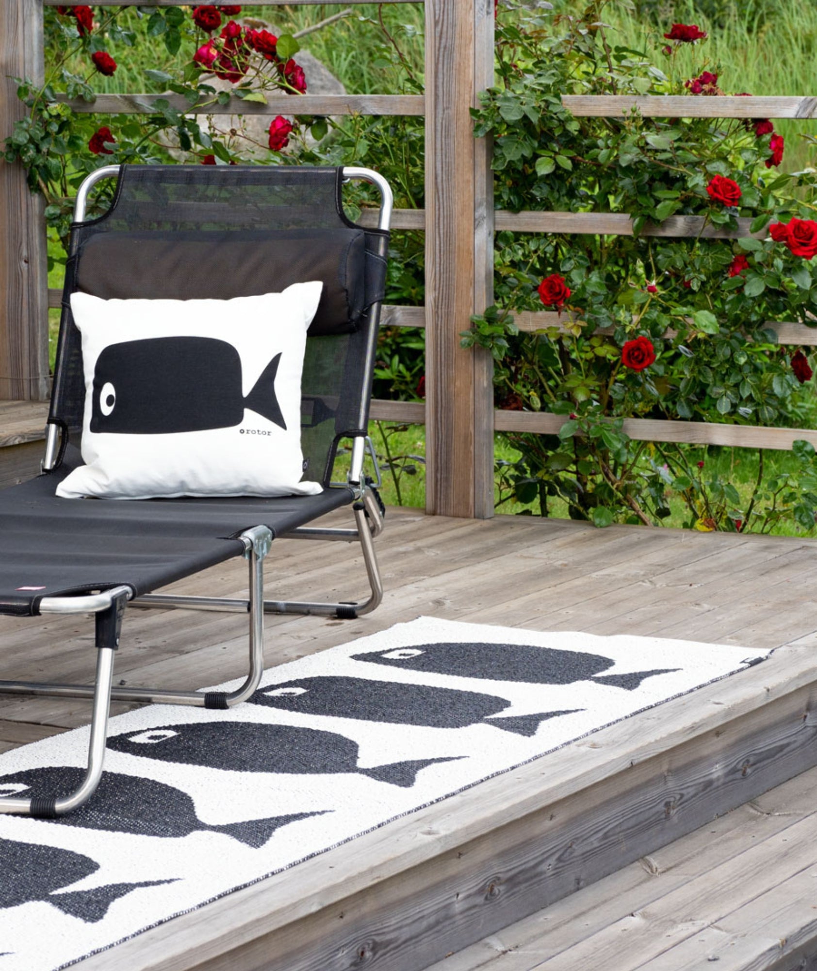 Plastmatta Whale svart/vitt, perfetkt för både inomhus- och utomhusmiljöer. Vändbar, postiv/negativ.