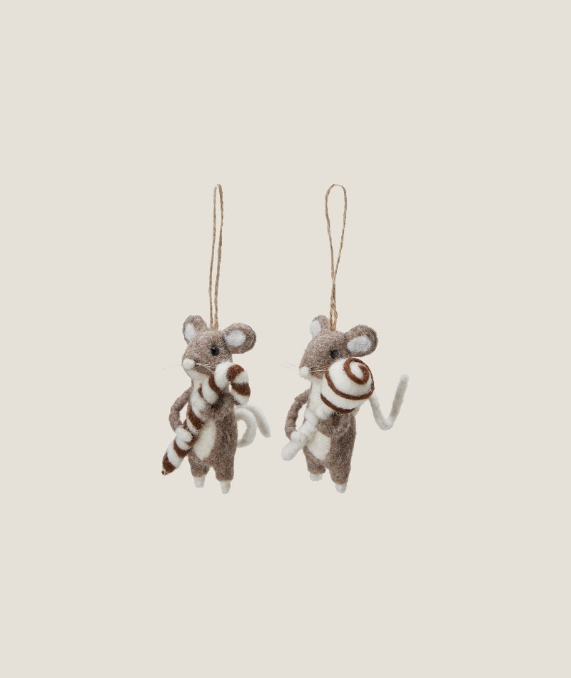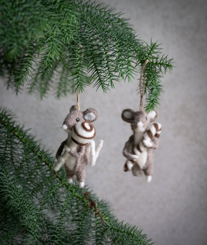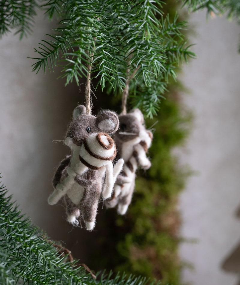 Ett sött set med två mushängen i mixade utföranden som skapar en lekfull och varm känsla i din dekor. Perfekta att hänga i granen, på paket eller som små detaljer som sprider glädje året runt.