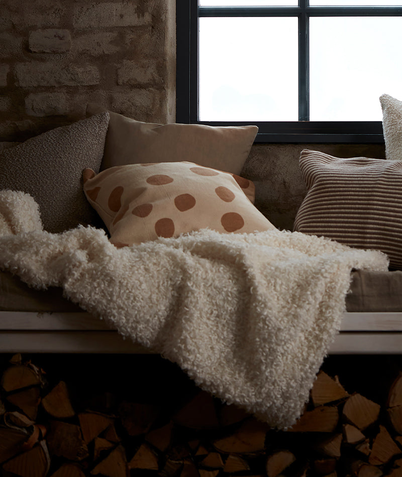 Dorte kuddfodral i färgen Iskaffe är en stilren och mjuk inredningsdetalj som skapar en varm och harmonisk känsla i hemmet. Kombinationen av vita och beige toner ger ett lugnt och naturligt uttryck som passar lika fint i vardagsrummet som i sovrummet.