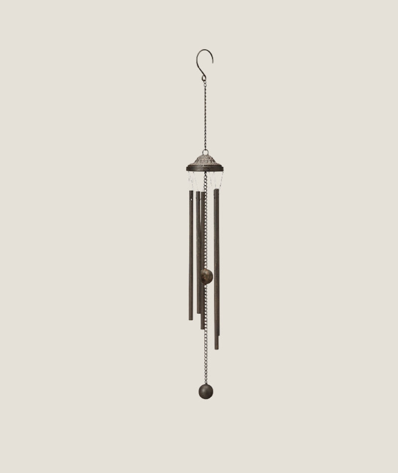 Fånga vindens harmoni och skapa en ljuvlig atmosfär i din trädgård med vårt Roya vindspel i rost metall. Varje gång vinden smeker de vackert utformade metallstängerna, fylls utrymmet med en förtrollande klang, vilket gör detta vindspel till ett musikaliskt tillskott till din utomhusmiljö.