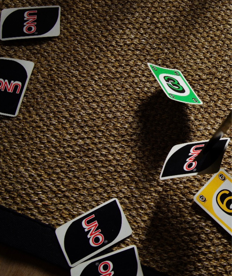 - Undvik långvarig exponering för direkt solljus. Det kan bleka färgen över tid. Mattornas latex- eller gummibaksida gör att de ligger stadigt på golvet. Kontrollera regelbundet att underlaget är rent och torrt för att bevara funktionen.