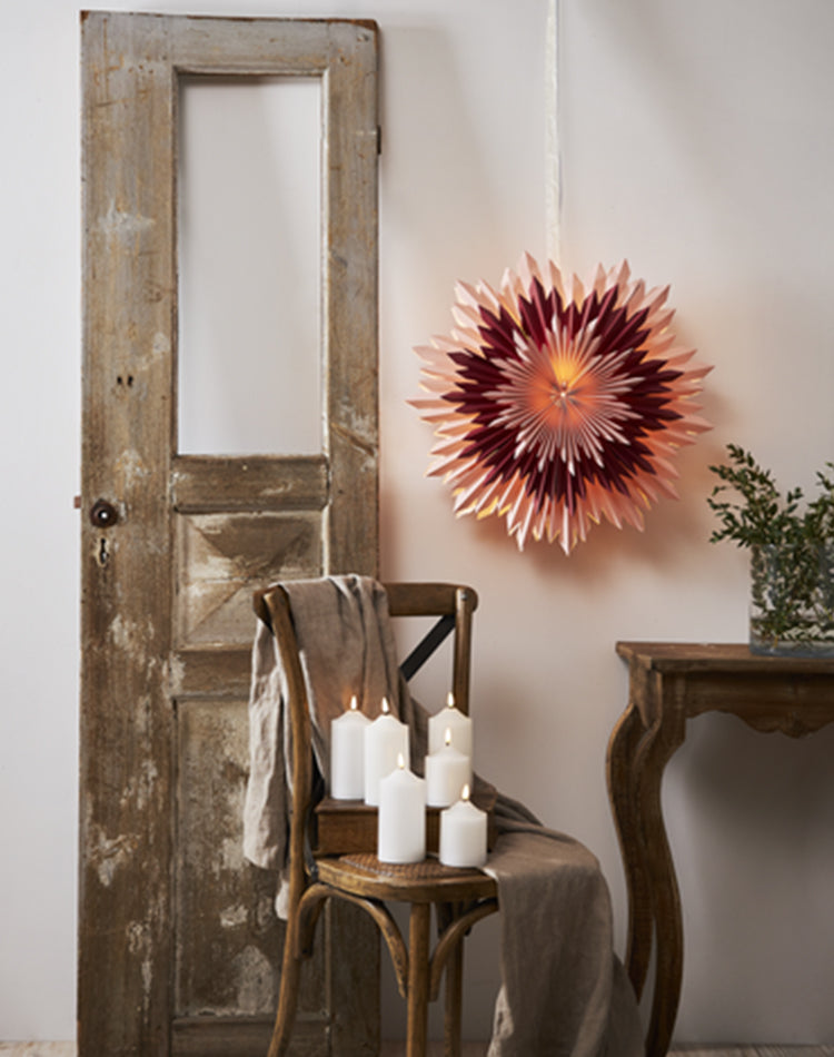 Pappersstjärnan ICE rosa/röd från Star Trading är en förtrollande inredningsdetalj som kommer att skapa den perfekta julstämningen i ditt hem. Denna rosa/röda pappersstjärna är en mästerverk av hantverk och innehåller många detaljer som ger den en unik och vinterlik känsla.