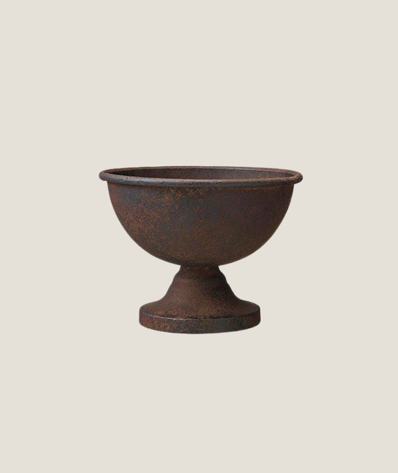 Ragna skål S i rost är den perfekta metallskålen för att lyfta fram dina planterade blommor och skapa en stilfull inredning. Dess rostiga finish ger den en charmig och rustik karaktär som kommer att bli en iögonfallande detalj i ditt hem eller trädgård.