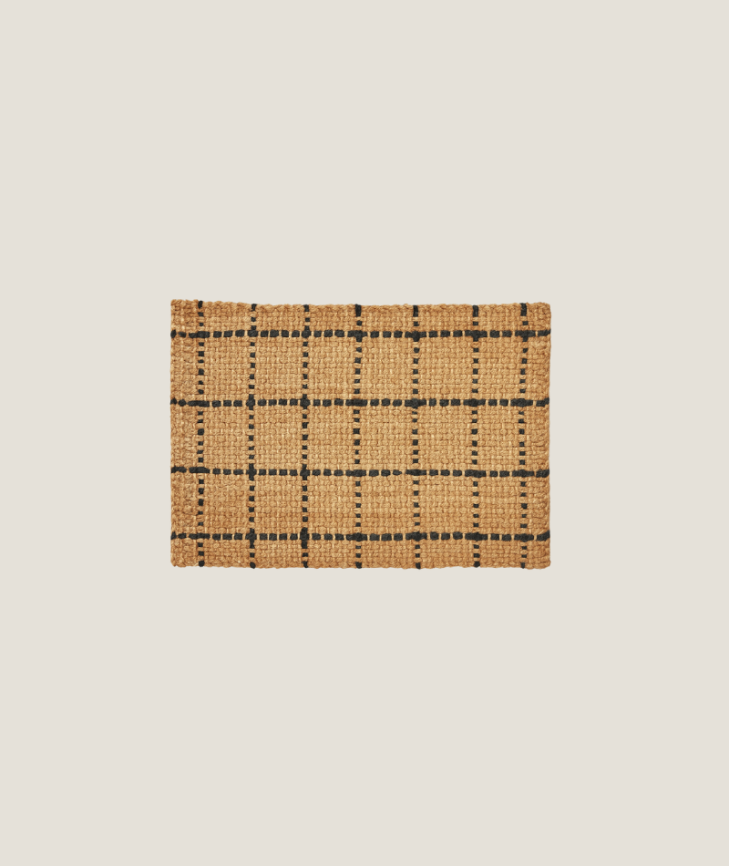 En dekorativ dörrmatta i jute med rutväv i både naturfärgat och färgat garn. Latexbaksidan ger stabilitet och halkskydd.
