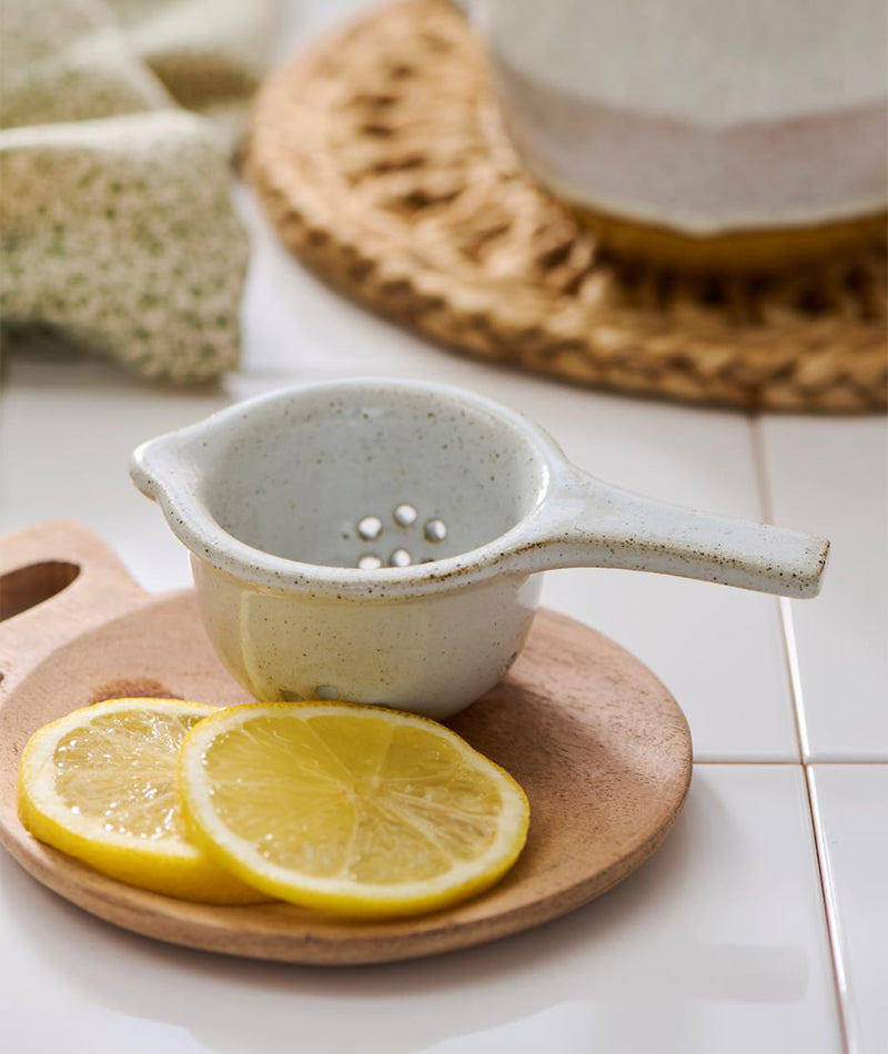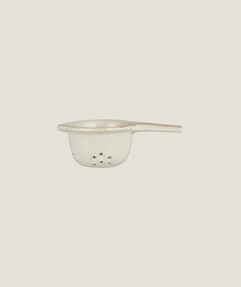 En elegant och praktisk tesil i stengods, perfekt för att brygga en kopp te med stil. Den vita melerade färgen och den robusta keramiska designen ger en naturlig och tidlös känsla som passar alla teserviser.