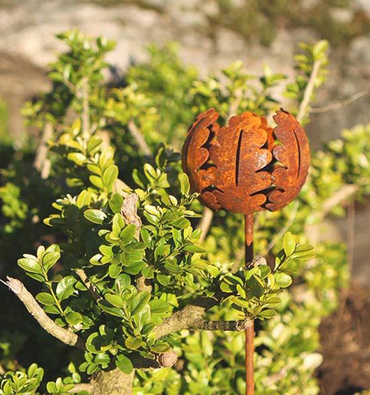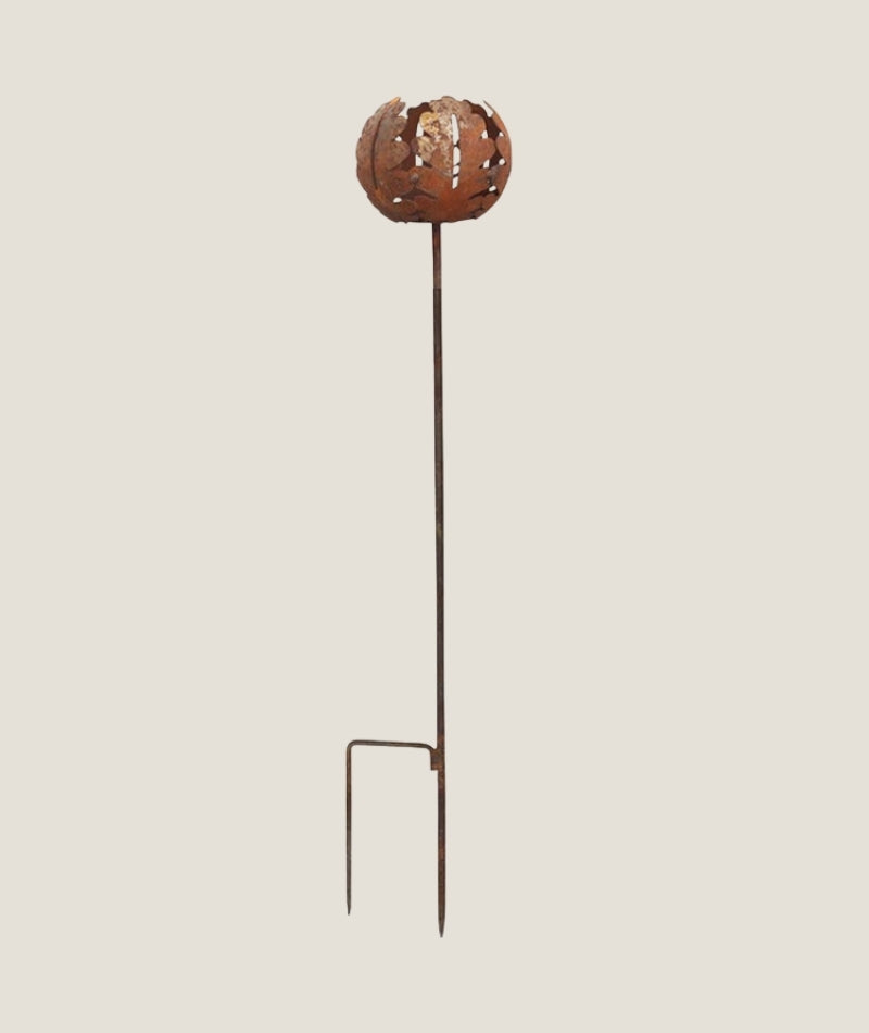 Tillverkad av högkvalitativ rostig metall, är varje detalj på värmeljushållaren noggrant utformad för att efterlikna skönheten och intricata mönster av ett ekblad. Den rostiga ytan förstärker det naturliga och rustika uttrycket, vilket ger en tidlös charm till ditt utomhusutrymme.