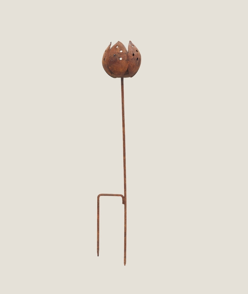 Förstärk den naturliga skönheten i din trädgård med vår rostiga värmeljushållare tulpan med markfäste toppig. Varje detalj på denna ljushållare är skapad med omsorg för att efterlikna formen och ådringen av äkta ekblad. Det rostiga ytan ger en rustik karaktär och en tidlös charm till ditt utomhusutrymme.