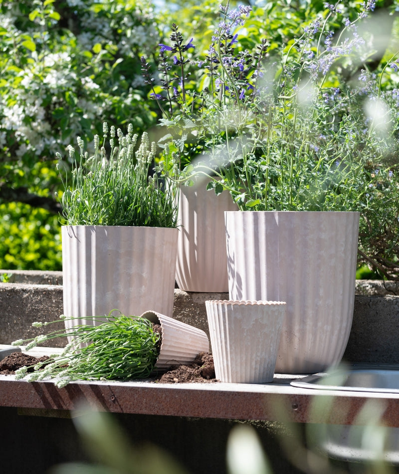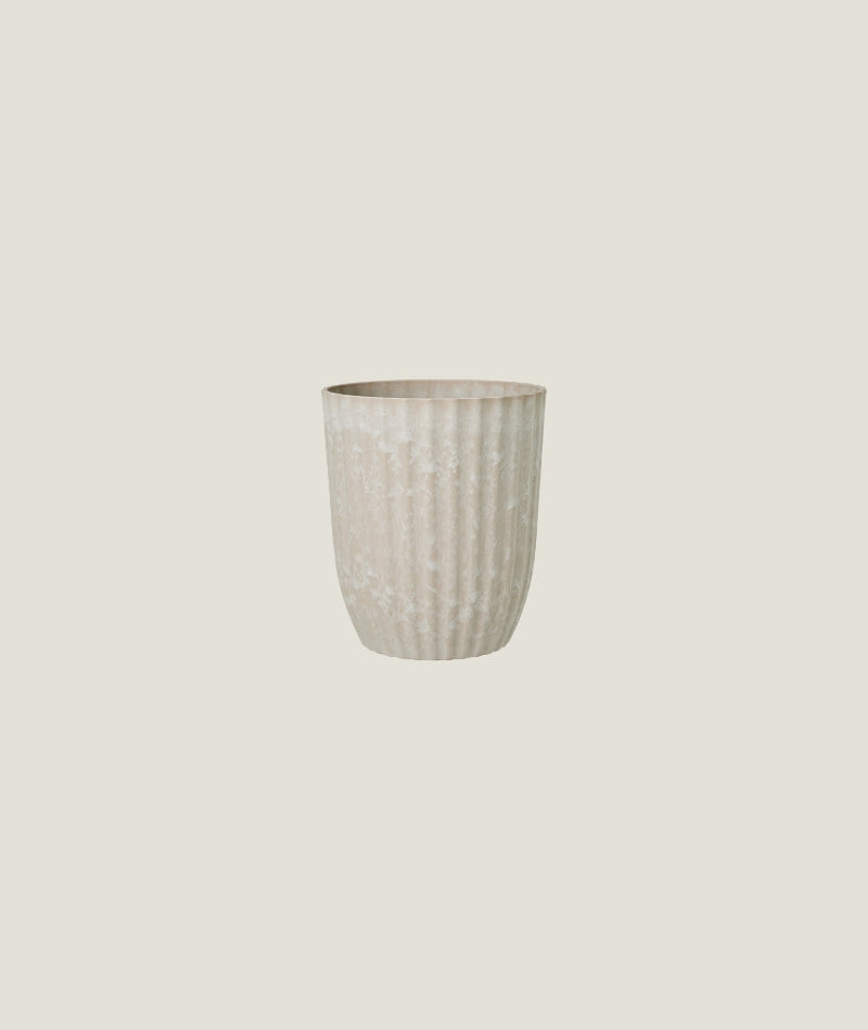 Stilren och dekorativ kruka i sandmelerad finish som ger ett mjukt och naturligt uttryck till ditt hem. Den varma färgtonen skapar en harmonisk känsla och passar lika bra i fönstret som på hyllan eller bordet.