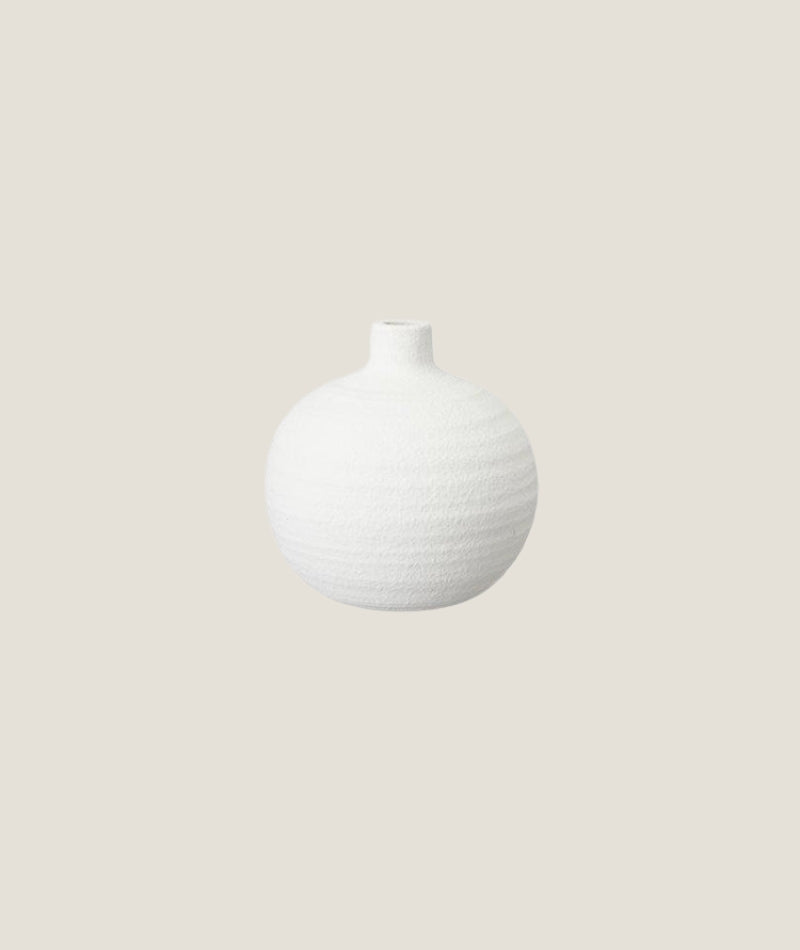 Med Alba Vas kan du skapa en sofistikerad och modern atmosfär i ditt hem. Dess eleganta design och unika texturerade yta gör den till en perfekt inredningsdetalj och ett konversationsstycke. Låt dina blommor blomstra i denna vackra vas och njut av den naturliga skönheten den för med sig.
