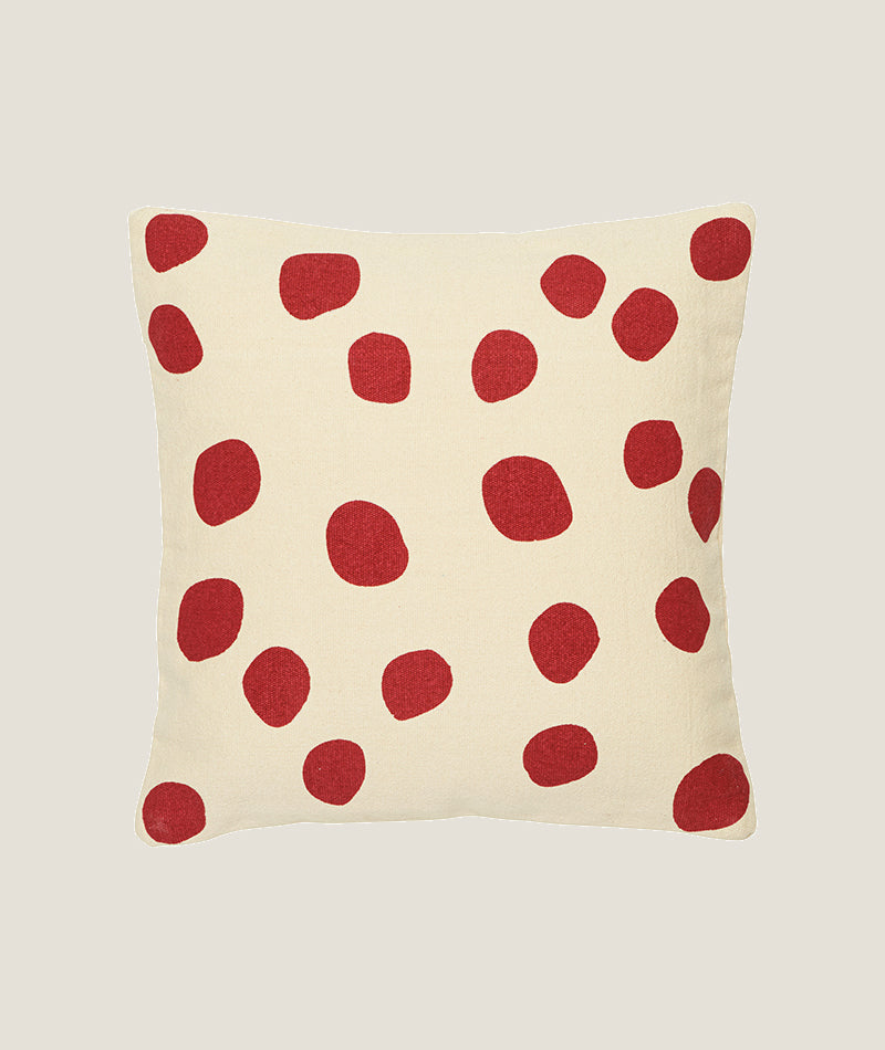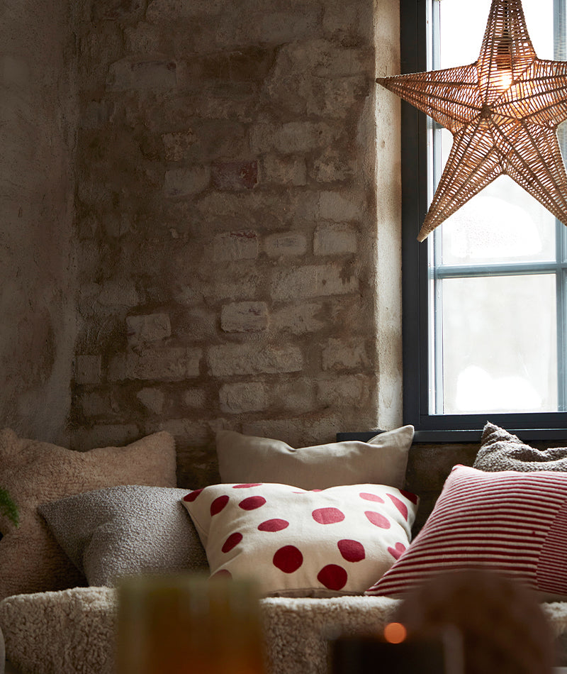 Dorte kuddfodral i mjuk bomull med vit och röd färgsättning skapar en varm och hemtrevlig känsla i rummet. Den stilrena designen gör det perfekt för att addera en subtil, julig touch eller bara lite extra färg året runt.