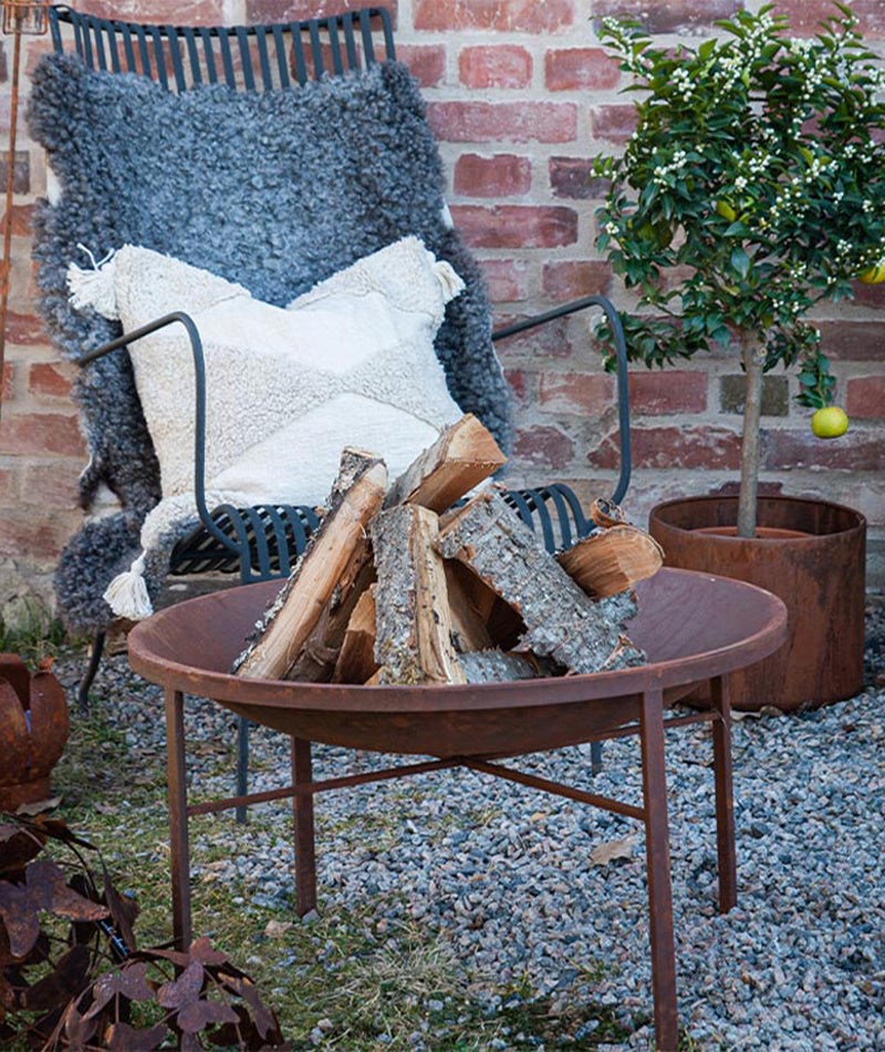 Franka Eldfat - Rustikt Trädgårdsfokus i Vacker Rostfärg, Ø62cm