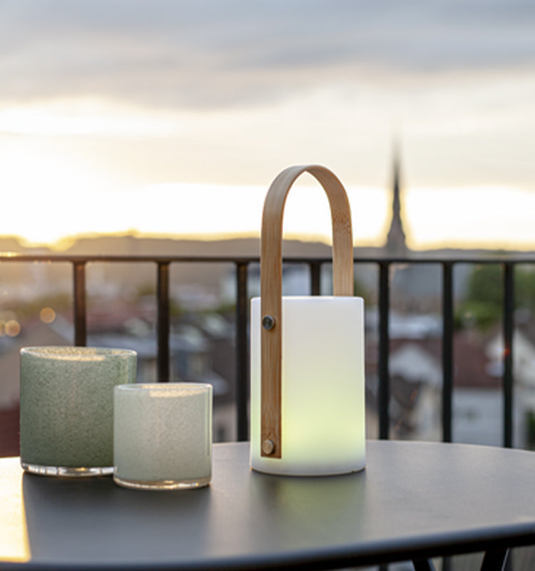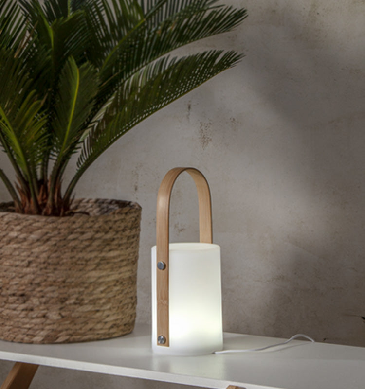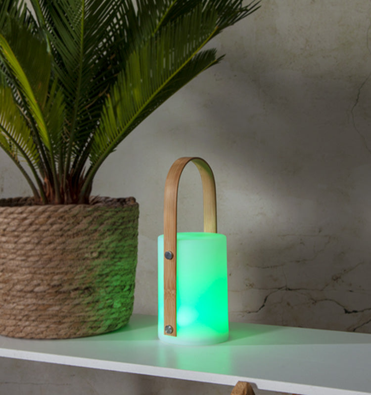 Snygg portabel lykta med flera färgval på ljusskenet, varmvitt eller färgat. Välj vilken färg du vill ha genom att trycka på knappen undertill. Håll in knappen i tre sekunder för att stänga av lyktan. Uppladdningsbart batteri som laddas med medföljande adapter. För både inom- och utomhusbruk. Kan bekvämt bäras omkring och ge behaglig extrabelysning ljumma sommarkvällar i trädgården, på balkongen, på stranden eller på picknicken.