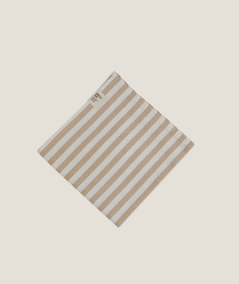 Fondaco's servett "Svea" i en fräsch sand färg med en klassisk rand är en enastående inredningsdetalj som kombinerar skönhet och funktionalitet. Denna servett ger en touch av naturens friskhet till din servering och ger en fridfull och inbjudande atmosfär.