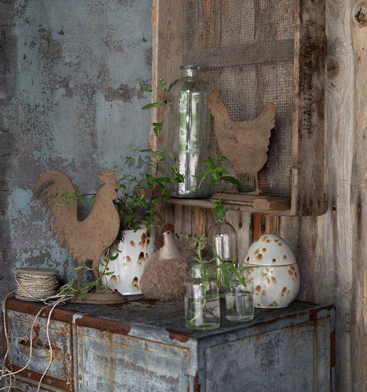 Med mått på 17x13x18 cm blir Tupp omedelbart en iögonfallande funktion i vilket utrymme som helst. Dess autentiska utseende och omsorgsfullt utvalda nyanser ger en tidlös estetik som kompletterar en rad olika inredningsstilar. Låt vår Tupp bli ett samtalsämne och en prydnad som skapar en varm och inbjudande atmosfär i ditt hem eller trädgårdsutrymme.