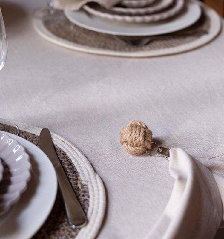 Vide klassisk duk i vacker sand nyans, som passar i de flesta dukningar. Bordsduken är tillverkad i återvunnen textil.