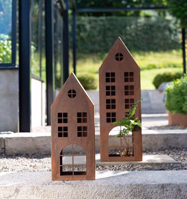Med sin rustika elegans och förtrollande utseende blir våra hus i rost L den perfekta prydnaden för din trädgård, uteplats eller terrass. Skapa en atmosfär av avkoppling och stil med dessa vackra och robusta hus, som är utformade för att vara en tidlös tillägg till din utomhusdekoration. Oavsett om du vill skapa en fridfull plats för avkoppling eller bjuda in till festliga utomhustillställningar, så kommer våra hus i rost L att vara en fantastisk krona på verket för din utomhusmiljö.